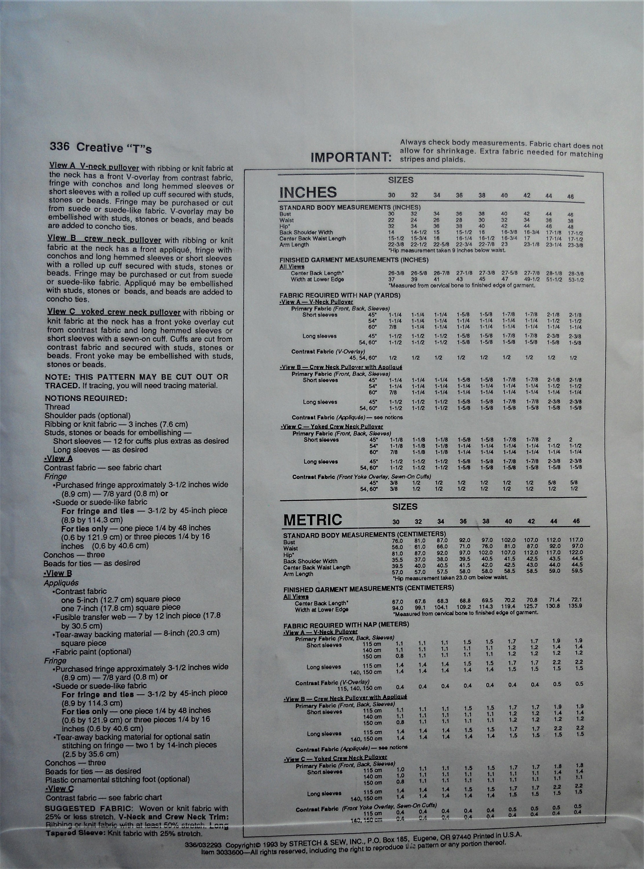 333 Stretch And Sew Pattern Vintage 90s T Shirt Collection Quick Bust Size 30 46 Ebay